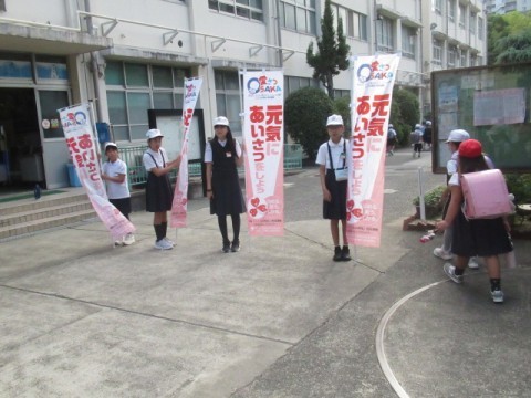 すいすいあいさつデーがありました。今日から後期児童会役員・代議員があいさつをしました。