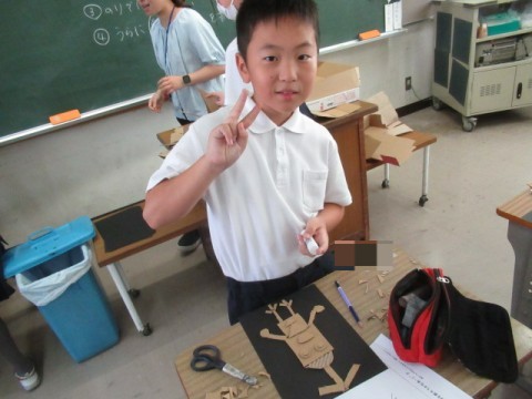図工で「不思議な森の生き物大集合」に取り組みました。工夫して作っています。