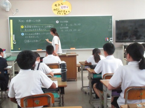倍数と公倍数の学習をしました。数直線を使わないで、公倍数を見つける方法を考えました。