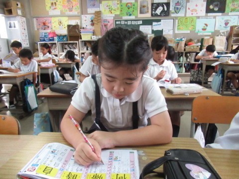 漢字の学習をしました。書き順等確認した後、漢字ドリルに練習をしました。
