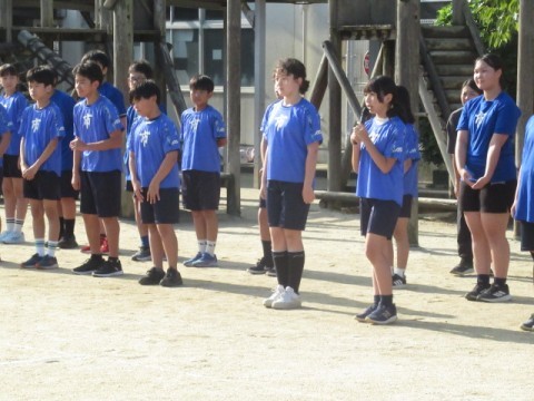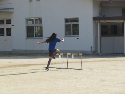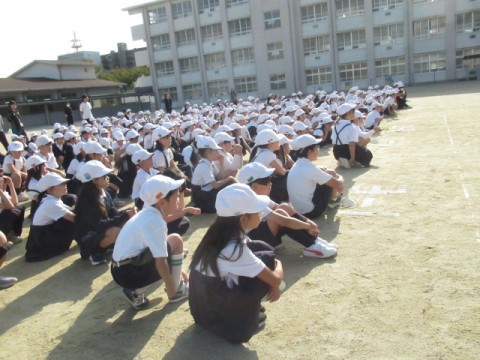 10月16日(木)、連合運動会があります。各競技種目の説明をし、実際の動きを見せてくれました。
