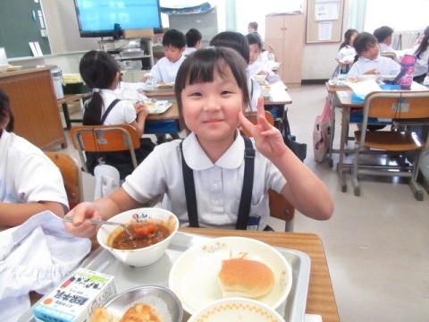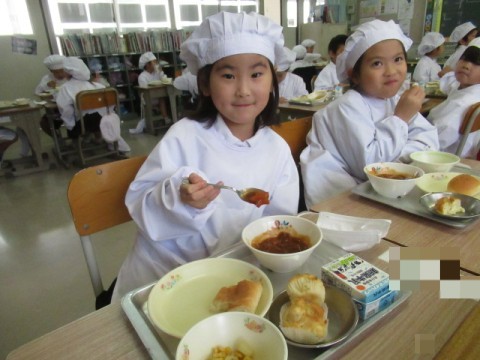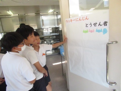 今日の給食の「ビーンズシチュー」にラッキーにんじんが入っています。楽しくおいしく食べることができました。調理員さん、楽しい取り組みをありがとうございます。