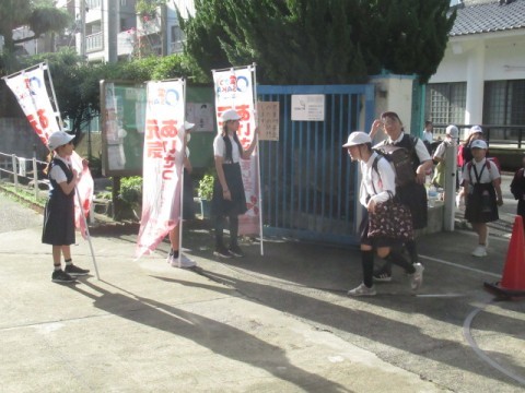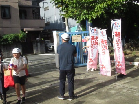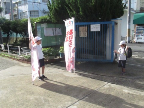 すいすいあいさつデーがありました。元気にあいさつをしました。