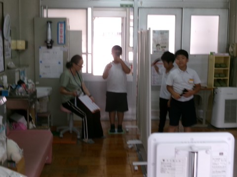 今日は3年生の視力検査がありました。どれくらいの大きさの形が見えるか検査しました。