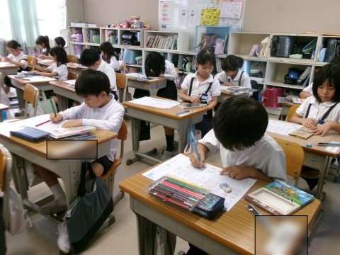 自分で書いたひらがなのとめ・はね・はらいを見直して,書写シートを仕上げました。