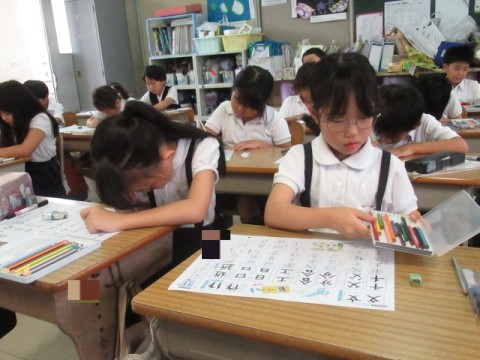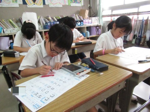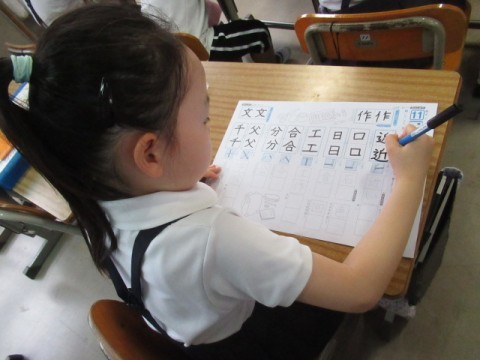 書写プリントをしました。画のつき方と交わり方を学習しました。