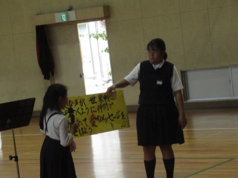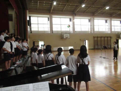 体育館で全体練習がありました。ソプラノ、アルトに分かれて練習をしました。