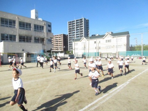 朝のかけ足がありました。今日は、2・3・5年生です。