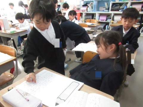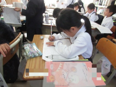 正しく文を書く練習をしました。「文のはじめは一マスあける」「句読点を書く」等に気をつけました。
