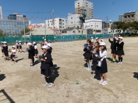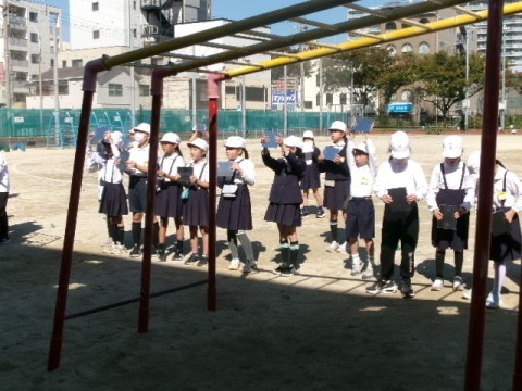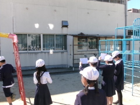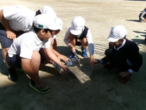 光のせいしつの学習です。鏡を使って,日光をはね返しました。