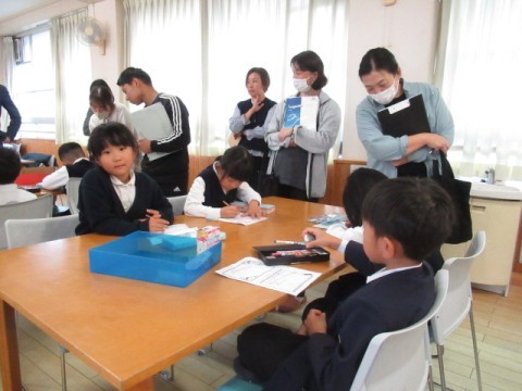小学校-幼保園間をつなぐ取り組みです。公開授業、討議会に近隣の幼保園の先生方が参加しました。