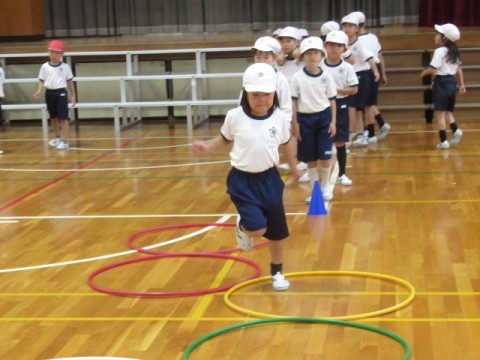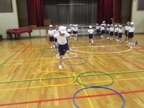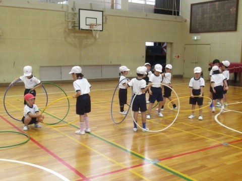 フラフープを使い、体つくりをしました。