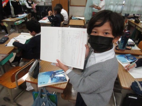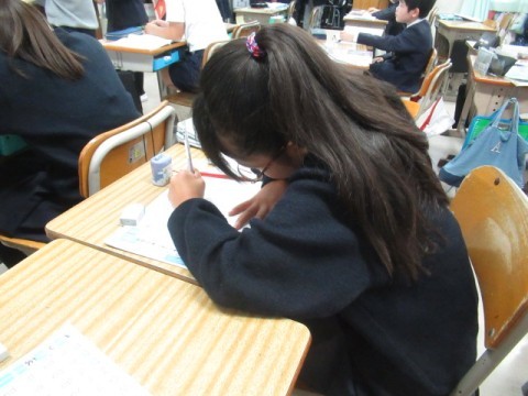 「はじめ」「中」「終わり」に分けて組み立てを考えました。先生にチェックしてもらっています。