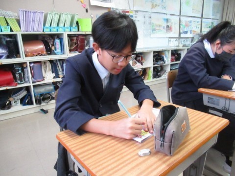 漢字の学習をしました。書き順に注意して書いています。