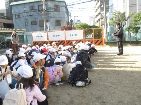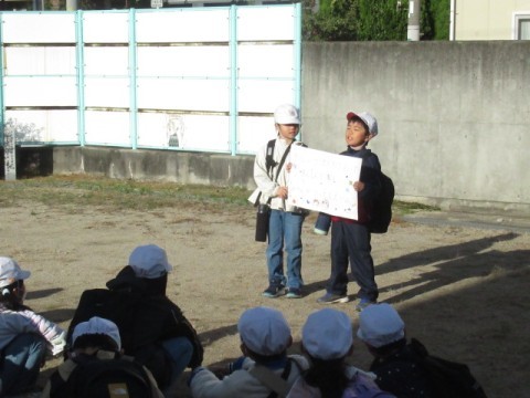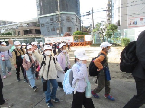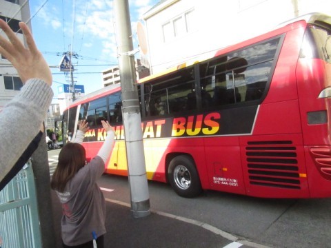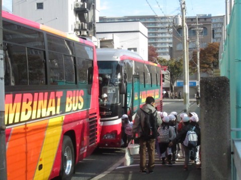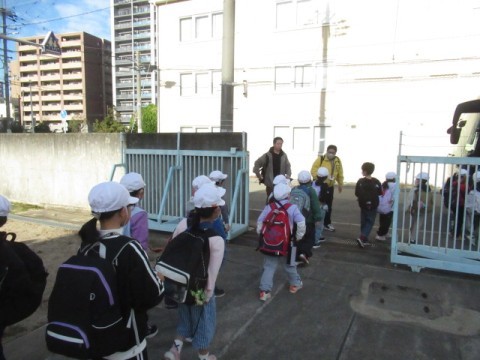 2年生が「上の太子観光みかん園」へ校外学習に行きました。元気に出発しました。