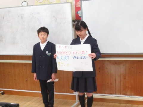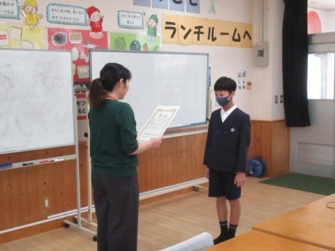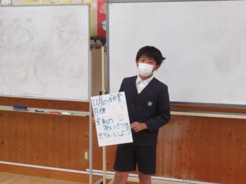 月曜朝礼がありました。保健委員会の話。給食委員会の話。生活委員会の話。表彰がありました。