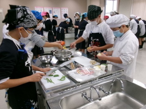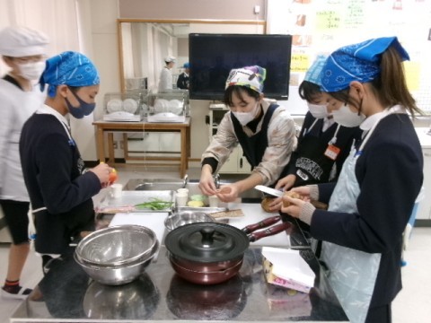 調理実習で「野菜のベーコン巻き」と「ジャーマンポテト」をつくりました。