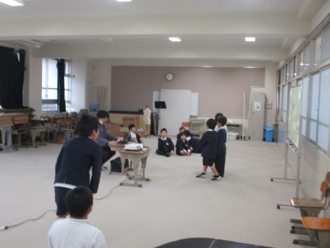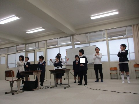 今日の朝の会は多目的室で劇の流れやダンスの振り付けの確認をしました。セリフや舞台に出るタイミングを確認して、練習に取り組みました。