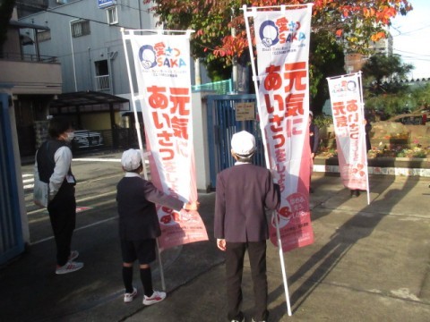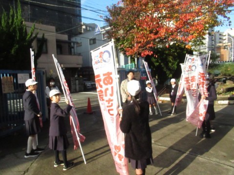 すいすいあいさつデーがありました。元気にあいさつをしました。