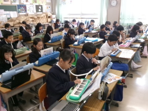 けんばんハーモニカでいろんな曲を演奏をしました。