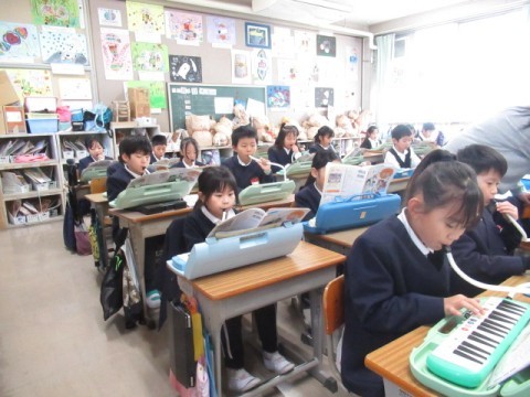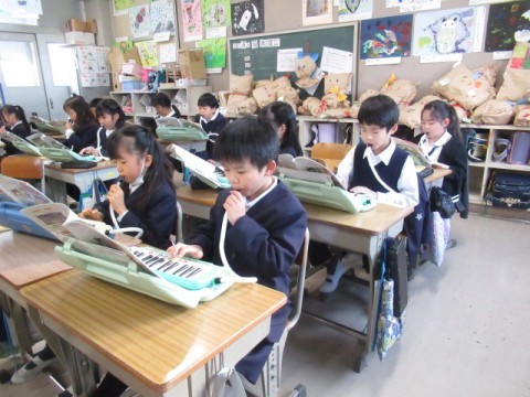 「小ぎつね」を鍵盤ハーモニカでふきました。