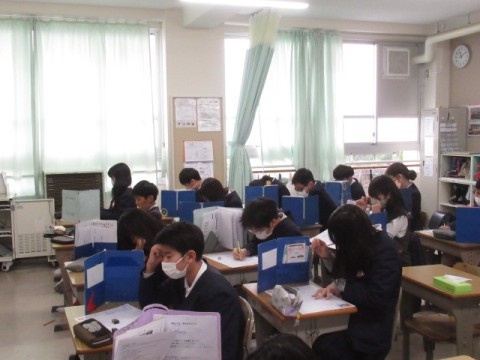 漢字大テストに取り組みました。集中しています。