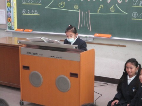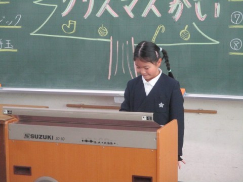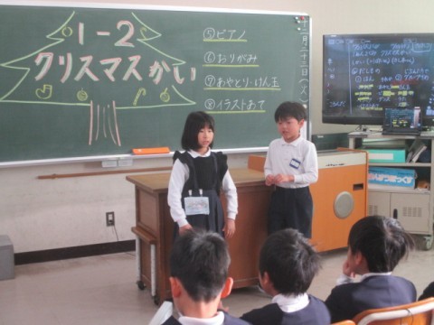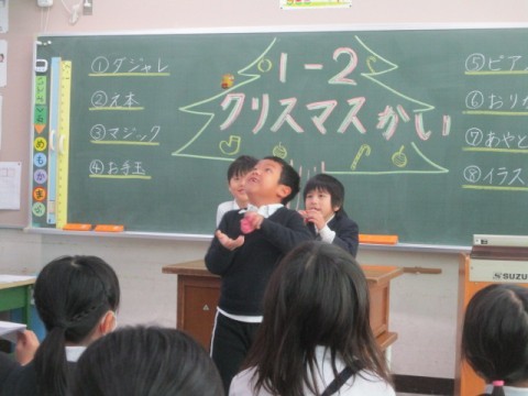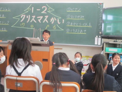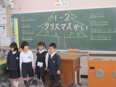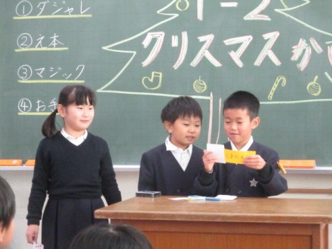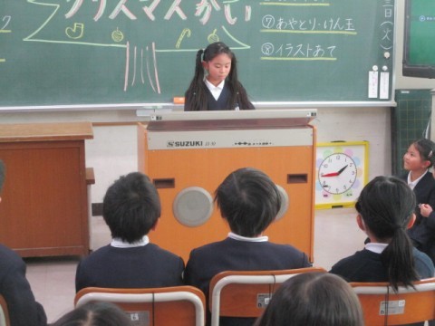 クラスでクリスマス会をしました。グループでやりたい出し物をして、みんなで楽しむことができました。