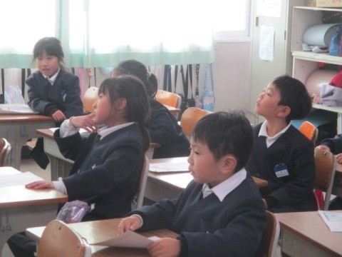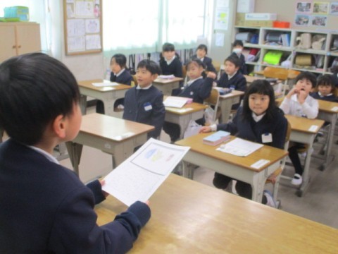 「くわしくきこう」の学習で,冬休みの思い出を発表しました。「どんな?」「だれと?」「どこで?」など,たくさん質問して,くわしく聞くことができました。