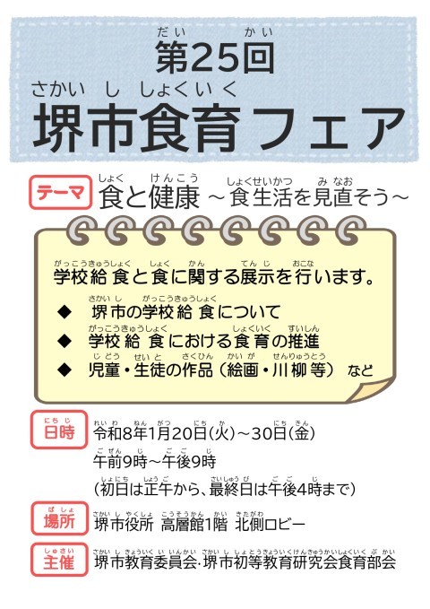 堺市食育フェアの「児童の作品コーナ」では、給食委員会児童が作った「川柳」も展示されています。