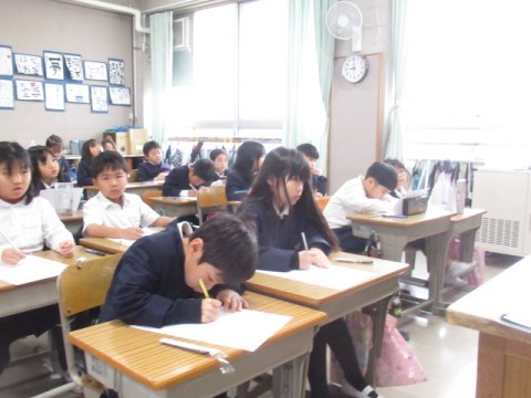 書写プリントをしました。「も」「う」等の書き方を聞きプリントに取り組みました。