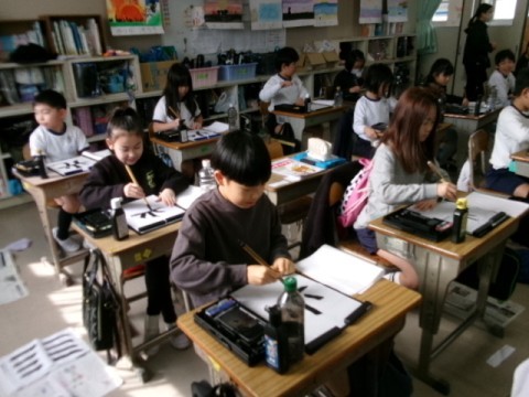 毛筆で「光」を書く練習をしました。