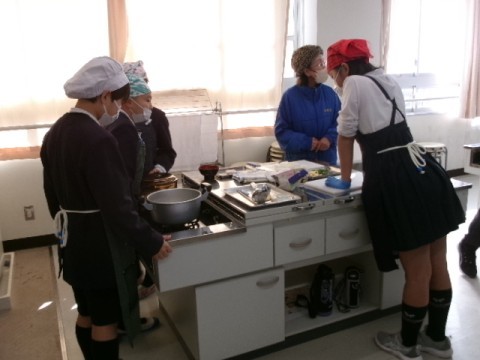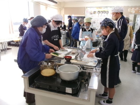 地域の方を招いて,6月から育ててきた稲から収穫した米を使って調理実習をしました。