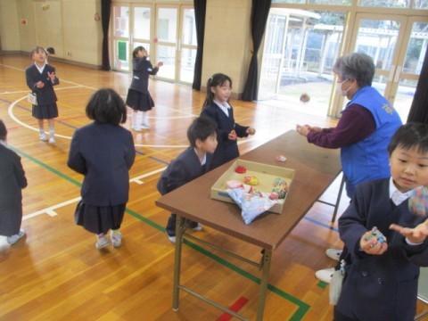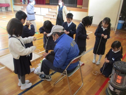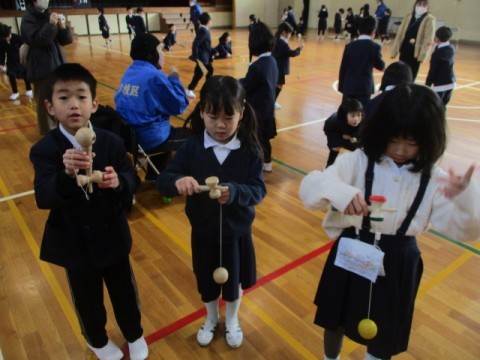 コマの回し方やあやとりのしかたなど、遊び方のコツを教えてもらいました。ご協力していただいた地域のみなさん、ありがとうございました。