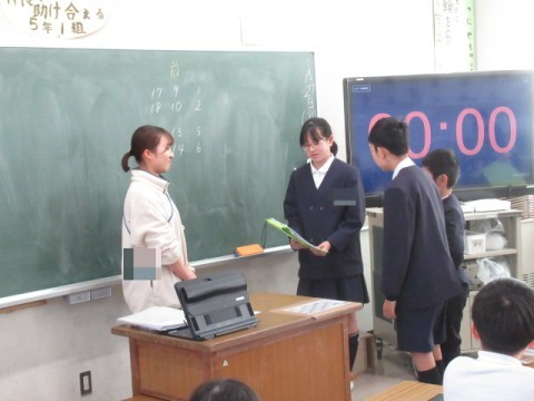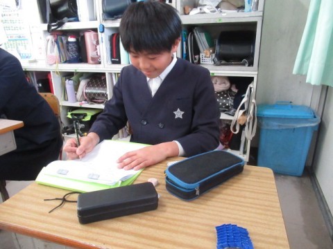 3学期から5年生がたてわり活動でリーダーとなります。ファイルにまとめたものを、先生に確認してもらっています。