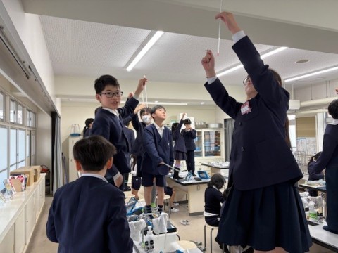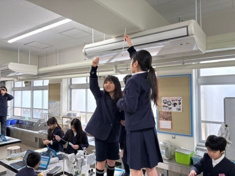 空気のあたたまり方を調べるために,まず教室の上のほうと下のほうの室温をはかりました。