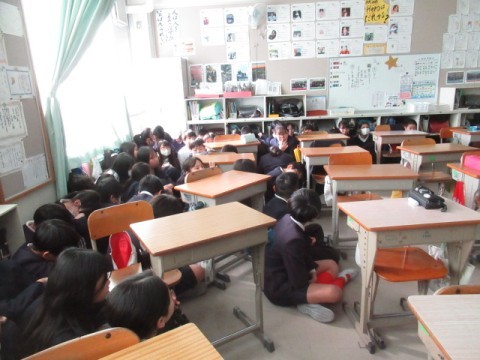 不審者対応避難訓練を行いました。もし、不審者が校内に侵入した場合、どのような行動をとればよいかを考え、訓練しました。先生の話や放送の指示を聞き、素早く行動することができていました。