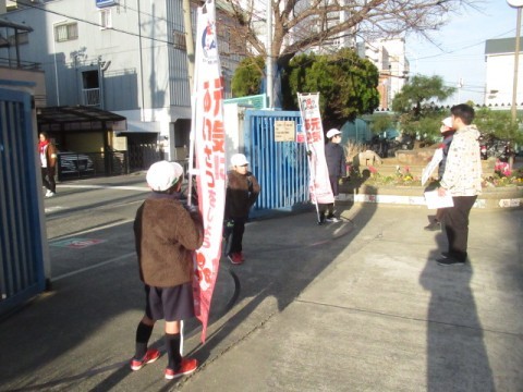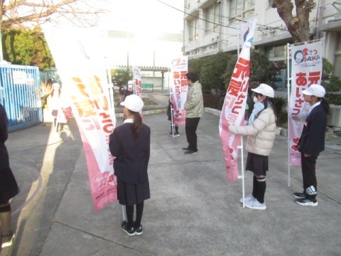 すいすいあいさつデーがありました。寒い中でしたが、元気にあいさつをしました。