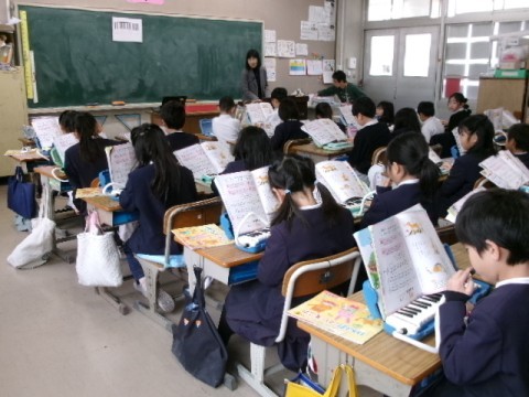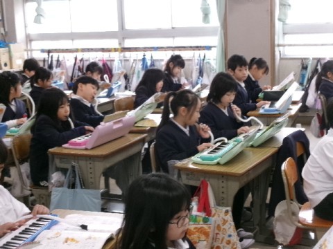 けんばんハーモニカの指つかいに気をつけて演奏しました。