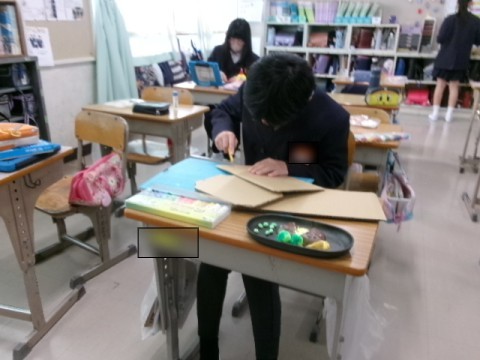 紙粘土で食品サンプルをつくっています。色や照りにこだわって,作品を作っています。