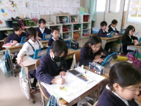 来週の参観に向けて,自分たちの町のいいところをまとめています。参観での発表会が楽しみです。