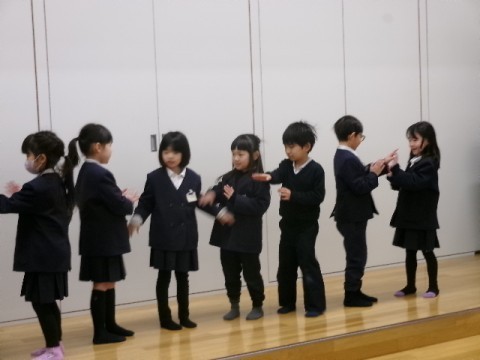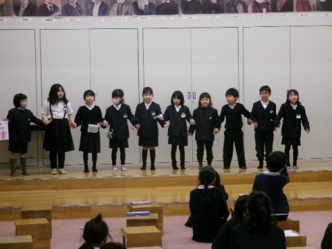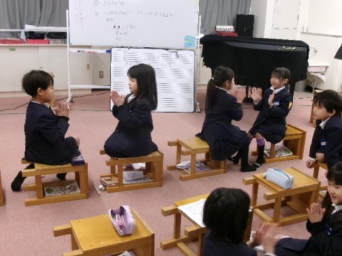 音楽室でみんなに発表する歌の練習をしました。