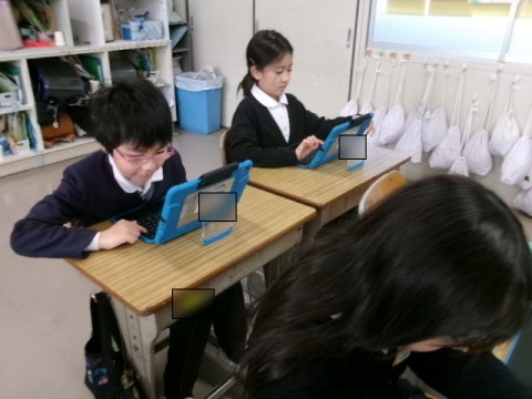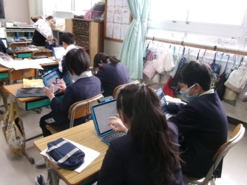明日の参観に向けて,堺のいいところを紹介する内容を見直し,よりよいものに仕上げようと取り組みました。