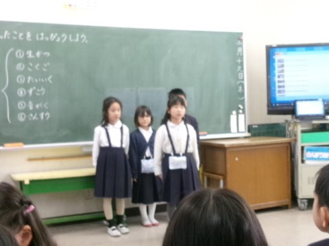 1年生になってがんばったことを教科ごとにグループで発表しました。