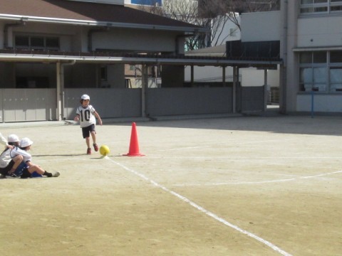 キックベースをしました。試合で勝てるように作戦を考えながら試合をしました。