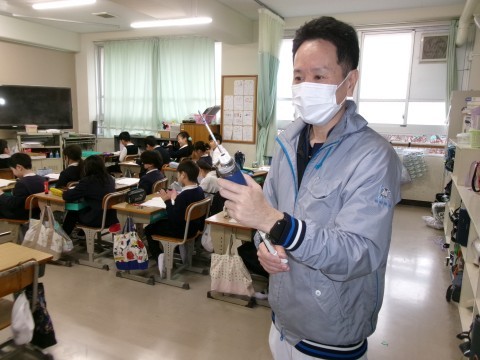 学校薬剤師の和田先生が来校し、教室の空気の検査を行いました。