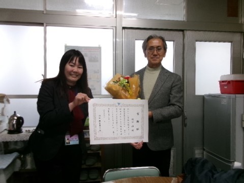 2/26 学校医勤続表彰 公開日 2026/02/26 更新日 2026/02/26 保健室 学校歯科医の先生が勤続10年を迎えられたので表彰状をお渡ししました。子どもたちの歯の様子を診察してくださったり、健康に関する授業を行ってくださります。ありがとうございます。