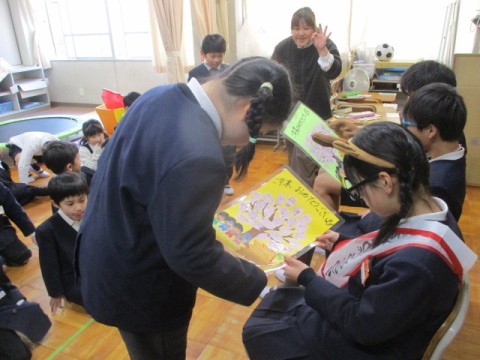 今日の朝の会は、もうすぐ卒業する6年生を送る会を開きました。教室に隠された文字を見つけると、「そうぎょう おめでとう げんきでね」というメッセージがありました。在校生の友だちからの寄せ書きを手渡されると、6年生のお兄さん、お姉さんからは自然と笑みがこぼれていました。