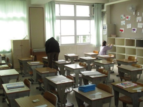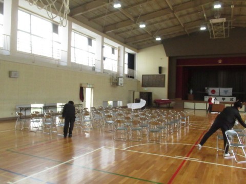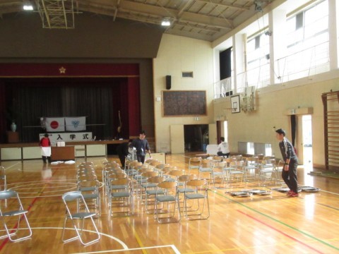 4月7日(火)の入学式に向けて職員で準備を行いました。会場の体育館や新1年生の教室を準備しました。