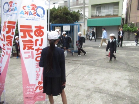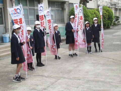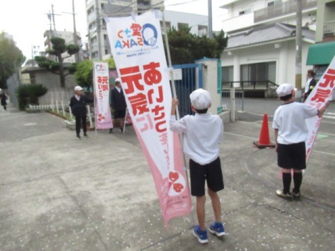 今年度はじめての「すいすいあいさつデー」がありました。児童会、代議員の子があいさつをしました。