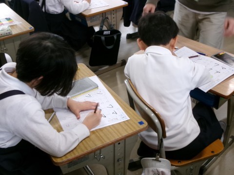 書写の時間です。はらいやはねに気をつけて,丁寧に字を書くことができました。